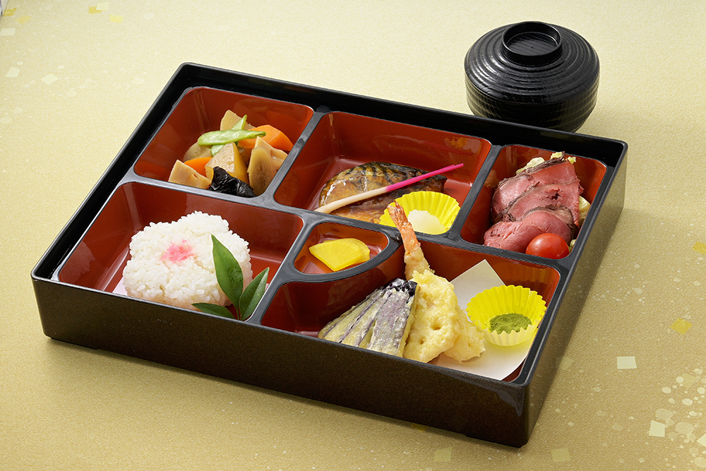 | メニュー内容 | ・天ぷら ・煮物 ・鯖の照り焼き ・ローストビーフサラダ ・白飯 ・味噌汁 |